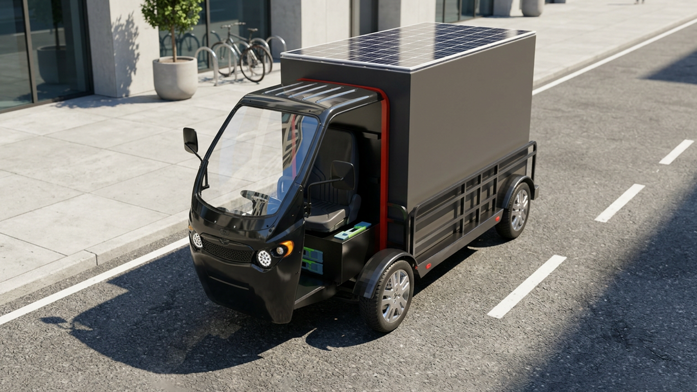 Heavy-duty electric logistics platform built for maximum cargo capacity. Solar-assisted charging and robust construction.